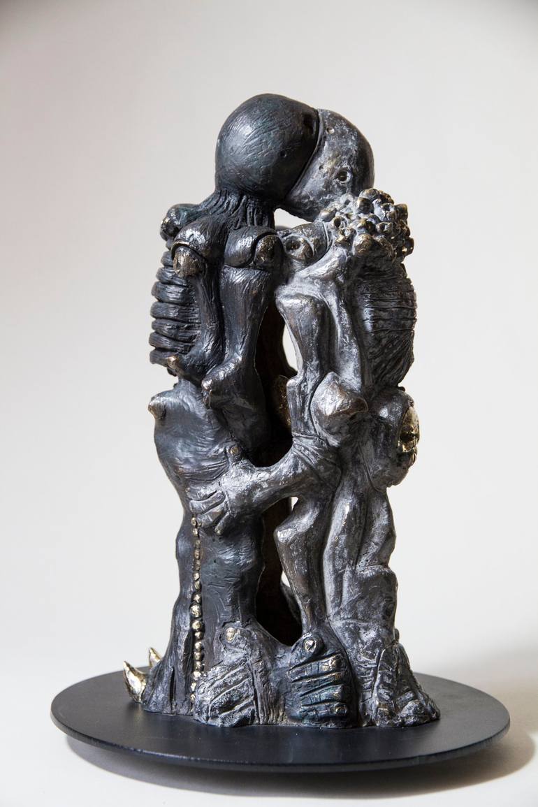 Dos seres se besan. obra en bronce. Realizada en Chile.