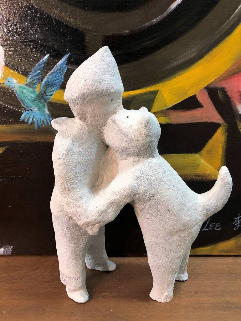 Resin sculpture creation concept from the composite media painting, each other seems to be from the canvas to the three-dimensional sculpture of the scene. Present creator in the topic of space effects, close care for children and cats. H42cm x W30cm x D15cm