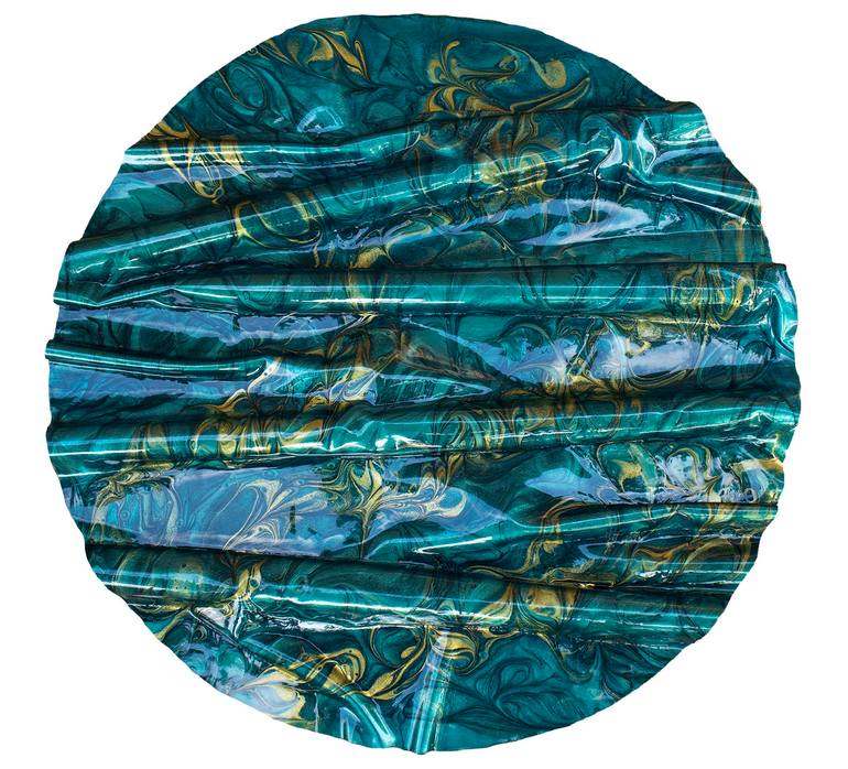 Fall in love with the depth and dimension of this hand-sculpted glossy resin disc. Deep emerald greens with splashes of gold create incredible depth, luminosity, and organic movement throughout. Need more than one, contact me.