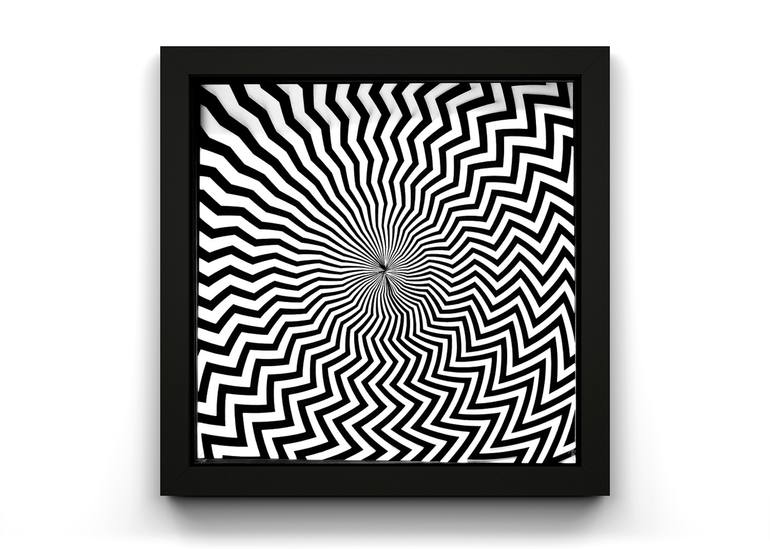 A three dimensional construction combines light, shadow and perspective to shift and transform the artwork for the viewer as they interact with the piece. There is a sense of movement created by the rhythm of geometry rising and falling in its eternal cycle. A homage to Bridget Riley, inspired by ...