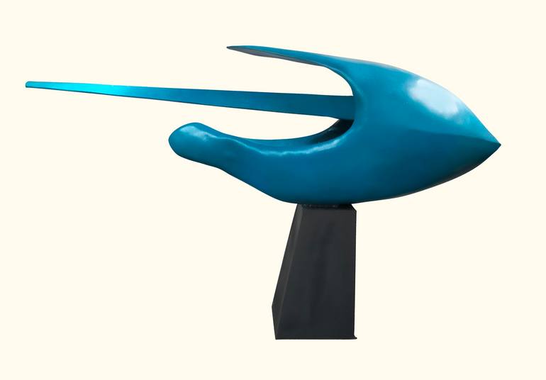 In creating this steel sculpture, I was inspired by the fluidity and grace of marine life. The sleek, streamlined form and the vibrant blue hue capture the essence of speed and freedom found in the ocean's depths. This piece is meant to evoke a sense of dynamism and serenity, making it a perfect sta...