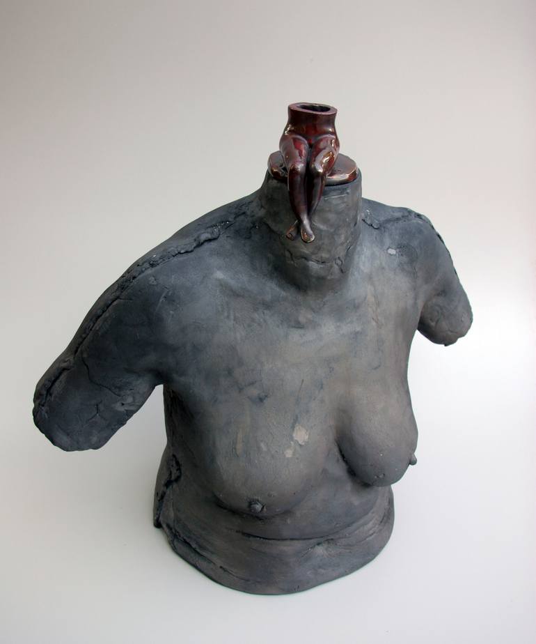 Laszlo Nemeth is a Hungarian artist whose ceramic sculptures simultaneously unsettle, provoke, intrigue and amuse. Some present an apparent conflict of the macabre and comedic, others imply an undercurrent of political unrest. Nemeth was born in Russian-occupied Hungary in 1965, the ‘Iron Curtain’ era of austerity and little or no access to western culture. A self-proclaimed rebel, he shunned the confines of the Communist state education system, choosing to satisfy his curiosity for learning with books, especially on physics, evolution and genetics. From the latter would emerge the personal repertoire of his art motifs, shaped in part perhaps by the stark graphic styles of the Eastern Bloc. In his village, exposure to art had been minimal and art education nonexistent; in 1992, none of that was to matter. The Communist regime had collapsed and the last Russian troops were leaving Hungary. Doors to the West were open and new opportunities for self-expression available. Out of curiosity, at age 27, Nemeth enrolled in a two-year part-time ceramics course whose instructors included Zsuzsa Fuzesi, Peter Korompai and Tamas Szarka. A visit that same year to Venice’s Guggenheim proved that his imagination need have no bounds, and with a distinctive personal vocabulary waiting to be translated into art, his work was quickly embraced by an emerging Hungarian art scene. After 20 years of exhibitions, symposia and travel it became all too apparent that the international art world is an English speaking one and that growing up under the Communist regime could have kept this door closed. Today, however, Nemeth is multilingual, living and working in a more multinational community on the island of Corfu, Greece