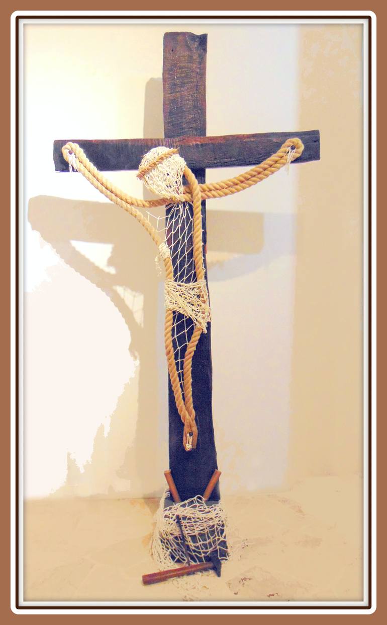 "This work was born from a vision in front of the Roman sea. I saw my soul meet my faith, so i took the material from the port and turned it into a work dedicated to the Lord."