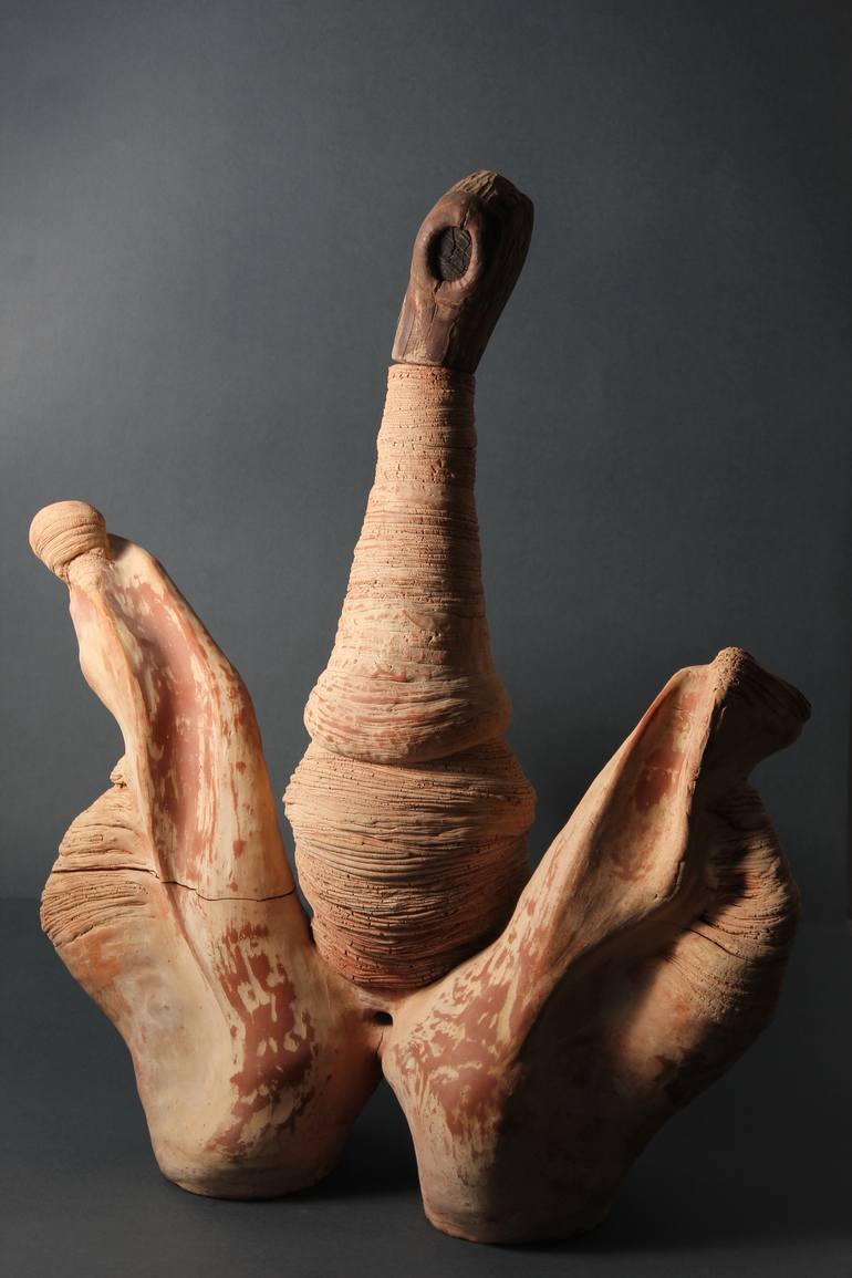 My ceramic sculptures are expressed through organic forms and are inspired from everything that’s alive or that is leaving the impression of movement. I especially combine human parts with natural elements for materializing my ideas. The plasticity of clay combined with the coiling technique results a wide range of possibilities and artistic expressions.In my works I have particularized and personalized the coiling technique and spontaneously expressed the essence of the profound human feelings. In my forms I’m talking about spirit and meditation,about physique and peace, about silence and space,so I launch an informational and emotional message. For me, ceramics has the implication of the four fundamental elements: earth,water,air and fire, both in physical and metaphorical matter. The ceramic path, in it`s complexity, is optimal and complete because includes a superior matter of form construction .The exploration of textures and graphic signs and the infinity of chromatic possibilities gives it a final touch.