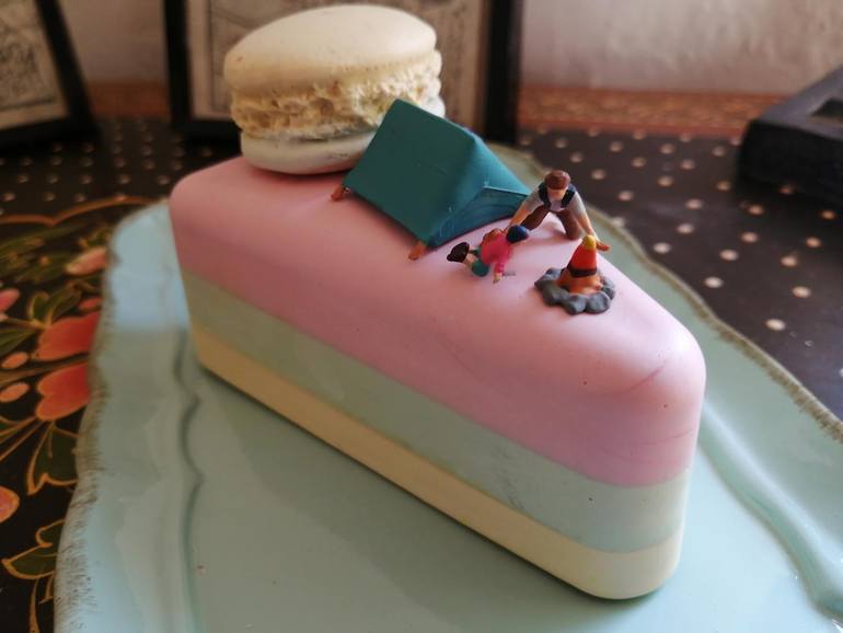 A small sculpture of a camping trip or trek, with a father and his son ligting a fire in of a tent, and sharing a family moment, on top of a delicious and colourful piece of cake. It can be bought alone or with "Father and Son Trek #2" Created by myself, this sculpture is a signed, unique piece. M...