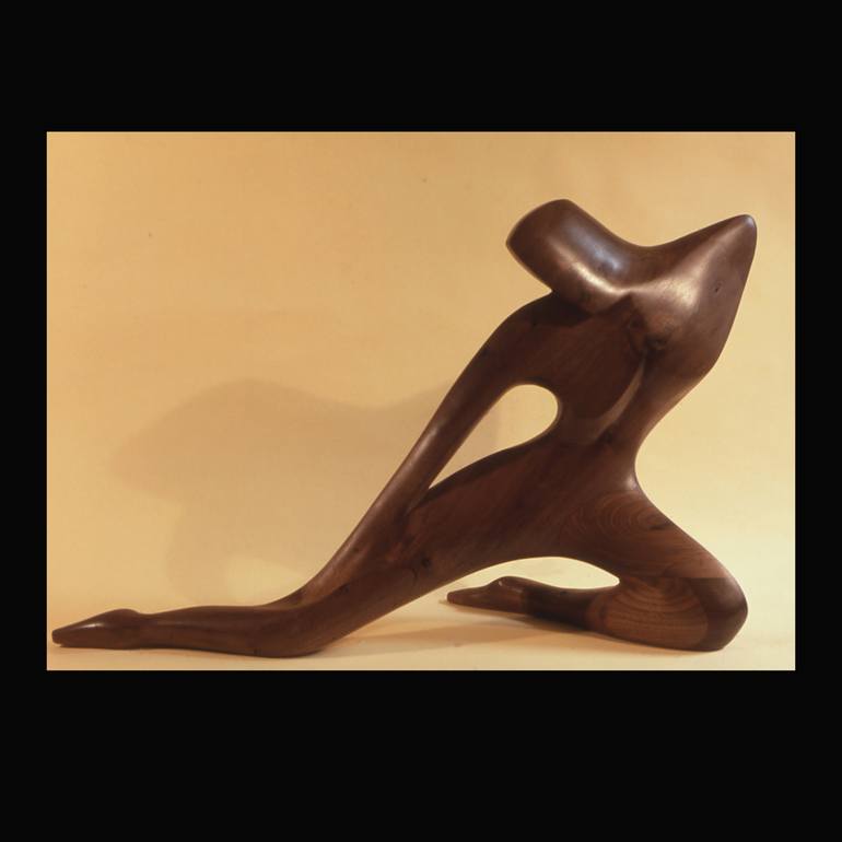 Starting with a life drawing, then doing a clay figure, I then move to laminating wood to approximate the final form before carving the finished piece.