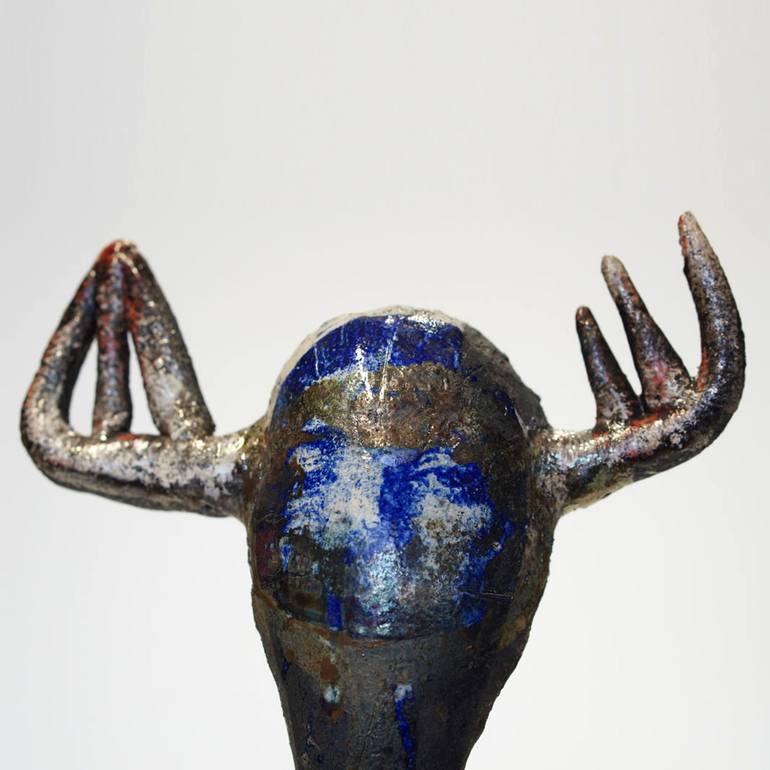 The sculpture is inspired from illustrations of Gods from Yoruba culture. The technique I used is my own research in creating ceramic collages using lithography and in this case combined with raku firing. The work is part of the project "Stories Untold" which is a series of sculptures with differen...