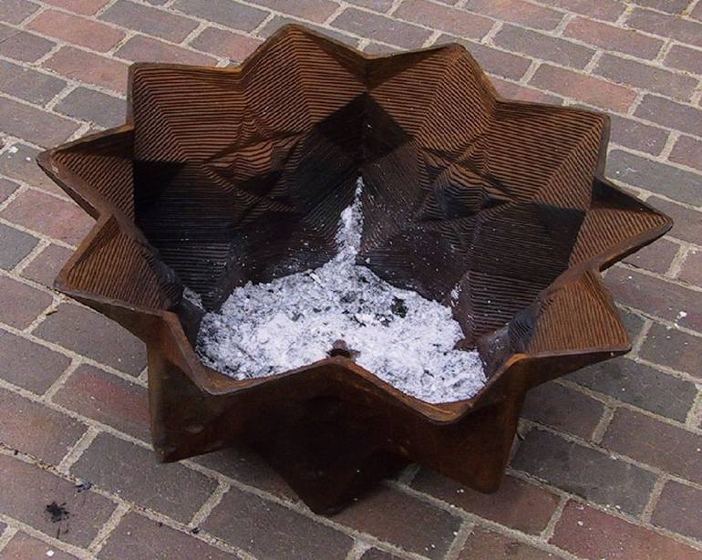 150lbs of cast iron - from masonite pattern. Not from a series . . .yet. Dodecahedron, split mid edges, pulled split point to center, star pattern generated. Used as centerpiece in "The Neutrality of Mathematics" sculptural installation.