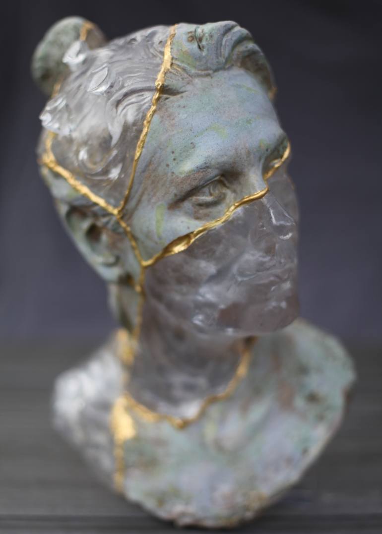 Fissures of Wisdom 2 2015 Glazed ceramic, resin, epoxy, gold Unique (one of a pair with opposite materials, sold separately) The classic portrait - an elegant pose – a considered composition of angles and eye direction, reminiscent of Bernini’s Baroque portrait of Costanza Bonarelli, 1636-38. Ho...