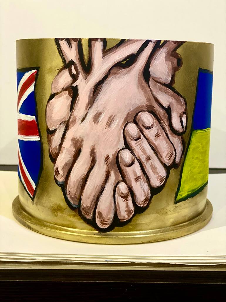 Это произведение искусства - отработанная гильза от 125мм танкового снаряда, которыми уничтожался враг на территории Украины. Гильзу привезли из горячих точек , я разрисовала ее . Концепция росписи - Много деток в нашем стране не родится из-за этой войны...Материал - латунь , роспись акриловыми крас...