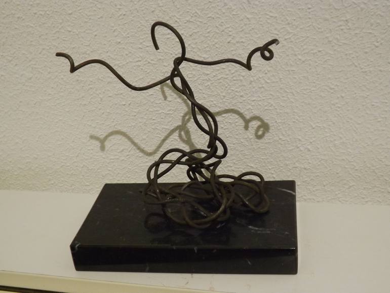 Pablo Alberti, Madrid 1962, with a long artistic family -grandmother, father and brother- painters background began his works in sculpture combining this activity as a writer and entrepreneur finding out new sensations. The human figures portrayed partially, the play of light and shadow, striking gestures, feelings and senses, form the basis of a formula to suggest figures looking at us and make us think. The three-dimensional drawing lines through the iron up figures in space in his last creative period. The customized element is higly considered in their creations which could mix an special order with his sculptures and creates from a loved cloth or object to a particular range of mountains hearthly hidden from the distance. 2015 creation crash is the Chat Machine, a customized sculpture for a clever coexistence which allows to change the position for each figure by rotating it by the base. There is an agree position and a disagree position. This last one means it is not a good moment for chating at home. Awsome wedding gift trully innovative. From 2017 is involved in the Furamnekoato project wich pays tribute to the flamenco dance variants with mixed technique of iron in oxide and stone, oriented to the Japanese institutions and culture market, by Menko pen name.
