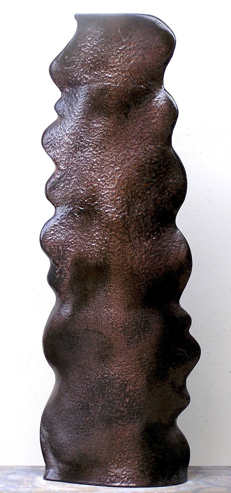 Sculptured ceramic. The vase could be stay either outdoor or indoor. The clay used has been choosen in order to give the opportunity to let him stay at the entry of a house, in the garden. The glaze is very very peculiar, it gives some glittered effects to the surface and when the sun enlights it th...