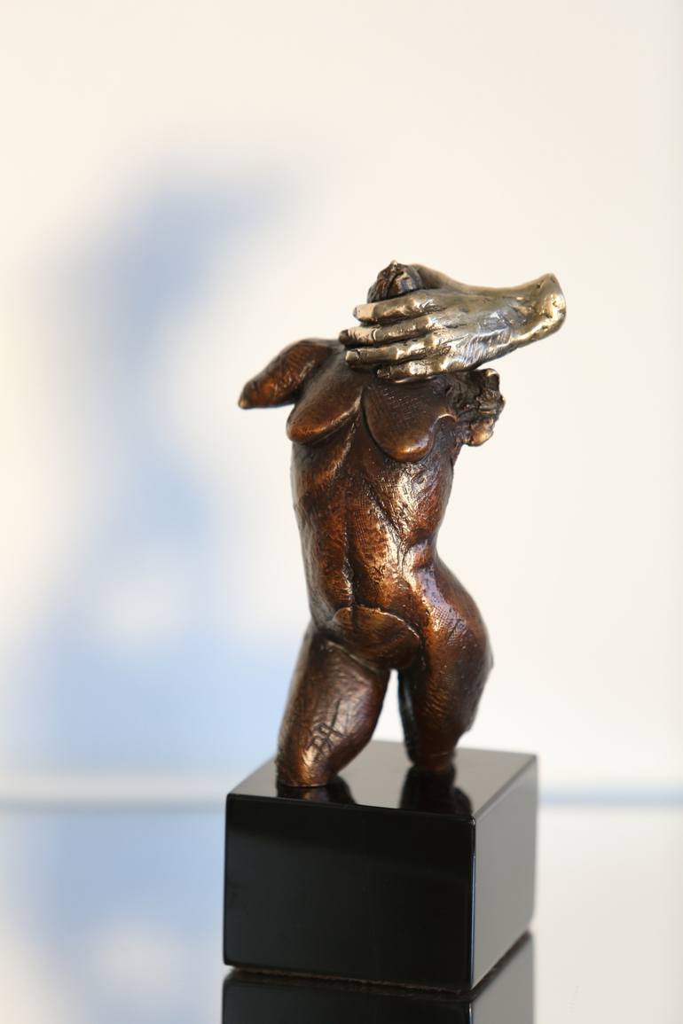 Golden Hand Female Nude - Bronze Sculpture on Marble This classic and elegant Female Nude with Golden Hand is as enticing as it is mysterious and elegant. Small table-top Sculpture 4-6 week lead time for "made to order" Packaging depends on size and fragility of piece