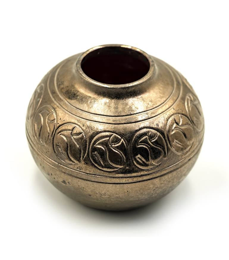 This golden ceramic vase is a unique piece of art. Thrown on the pottery wheel with skillful hands, it features a delicate, hand-carved bird pattern, bringing a touch of nature indoors. The vase has been through a meticulous firing process, reaching temperatures of 1000 – 1020 degrees Celsius in th...