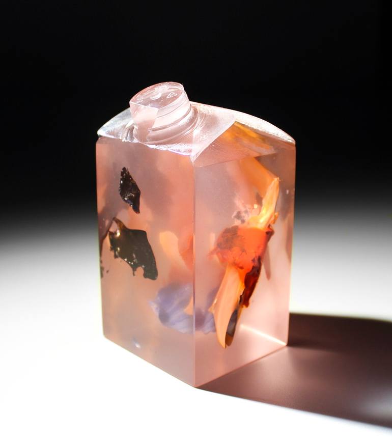 In 2013 Swartz began to suspend sculptural forms of paint within geometric prisms of hand cast acrylic glass. This solid and clear medium provided the ultimate means of abrading the distinction between two and three dimensional painting. These multi faceted works emphasize the congruity between pre...