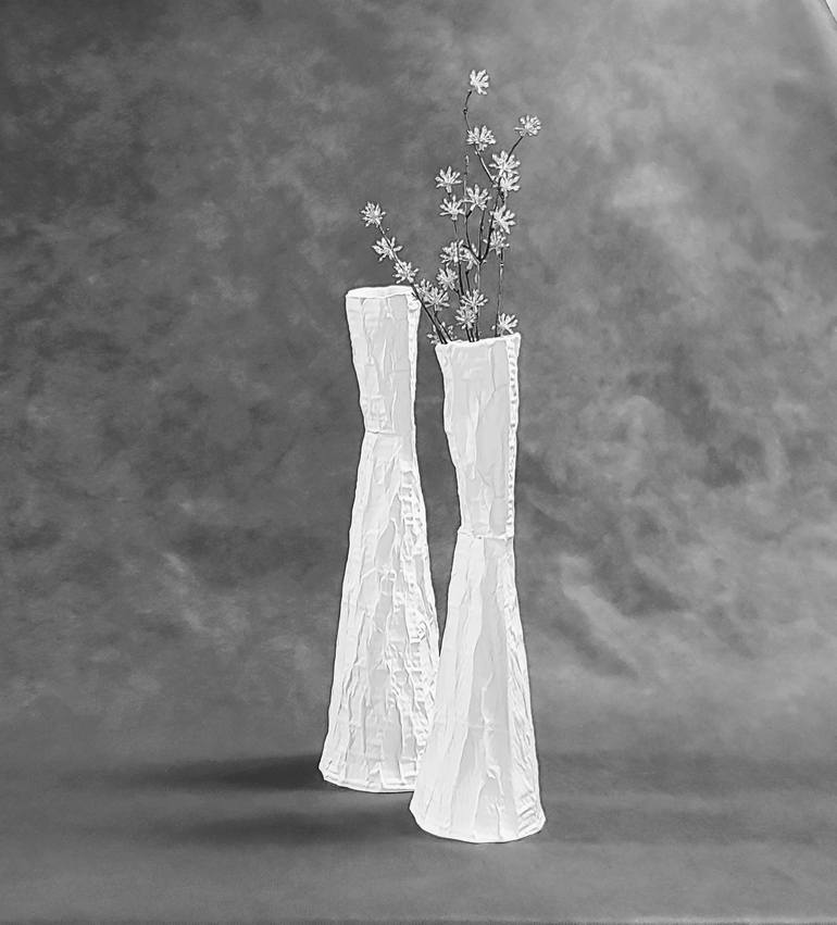 I live in Ravenna Italy, in my studio-home. I started my career as a ceramist in 1983 after attending the two-year INIASA ceramic course in my city, working as a decorator. I characterized my production with majolica inspired by the Byzantine mosaics of Ravenna and with the polychrome elaboration of a particular vine branch typical of the regional territory, marketing to private customers, shops, institutions by holding fairs and markets. Due to the need for large spaces, I moved my home and workshop to the countryside adjacent to the Po Delta Park for 15 years. Life in close contact with nature influenced the creation of landscape panels and bas-reliefs depicting the flora and fauna of the Delta , the Dunes of the sea and the abstract panels with carvings and reliefs. Curiosity about the use of materials other than ceramics led me to experiment with glass fusion, mosaic and papier-mâché. After my rural experience I lived and worked for several years in Dubai where I taught ceramic decoration at the Dubai International Art Center and at the Yadawey Ceramic Studio. I have exhibited at the Dubai Mall and for many years at the Alserkal Cultural Foundation, receiving prestigious commissions. Currently, driven by the search for symbolic and material lightness, I work with the experimental technique that I have called "Lightness Technique" with which I pour the porcelain or liquid clays that I prepare myself, into recycled cardboard molds that I shape and assemble to create the conceived forms. For more info visit: https://www.robertabarlati.com/