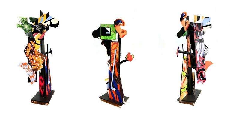 The sculpture of an amalgam tree with its many different edges carries a symbolic meaning of the multidimensional property of life. The artist's further exploration inspired him to put it on wheels, creating a new form of movable, flexible painted sculpture.
