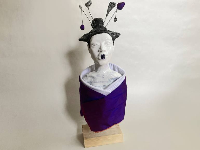 Hayami it's an uncommon Japanese women's name means rare beauty. Japan is one of my obsessions, and recreating my very own versions of Geishas is a fulfilling sensation. The headgear is a version I fancied from Ukiyo-E paintings, mainly from Hokusai, the master of masters. The hair pins are pure ima...