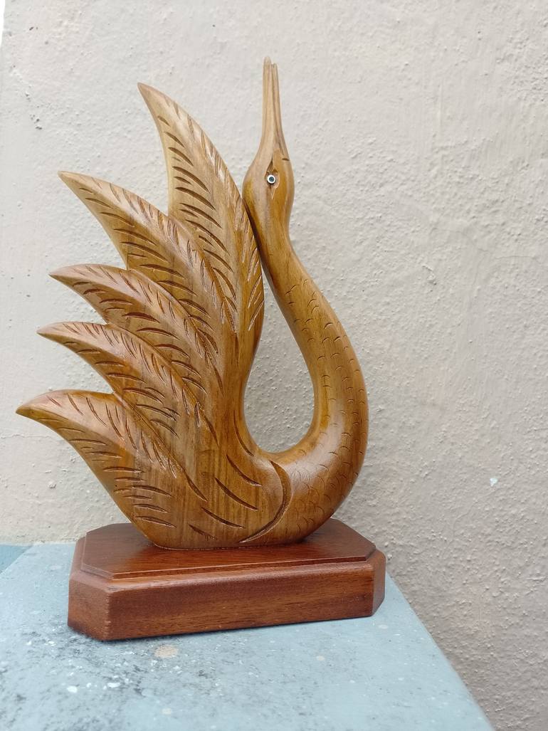 The exquisite swan sculpture, masterfully crafted by artist Dinesh Kumar Srinivasan, showcases the beauty of hand-carved teak wood. This stunning piece captures the elegance of the swan in graceful form, highlighting the intricate details and smooth contours that only a skilled artisan can achieve. ...