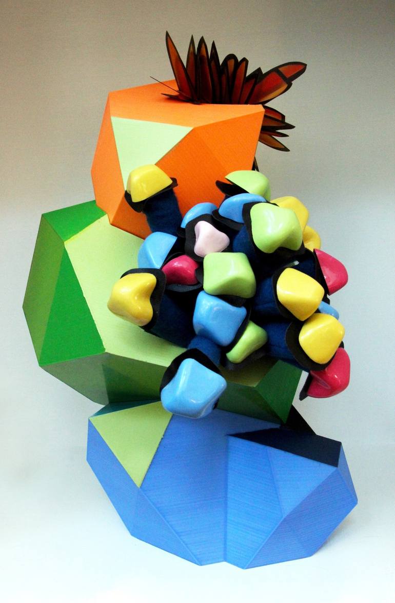 Cubist-influenced sculpture made with 3D printing from artist original design, composite of PLA plant-based, biodegradable plastic. Inserted into recessed areas are oil-painted plastic slices and a recycled reflexology mat. This extraordinary sculpture brings the historical and modern together, and ...