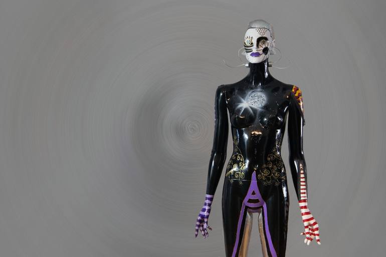 Harry is a unique hand painted original Shazequin. Once a female mannequin working for nothing in a shop window, Harry was rescued by the artist and transformed into a star gazing android. Harry stands tall in place and will live long and prosper. Shazequin is an irreverent concept in mannequin art...