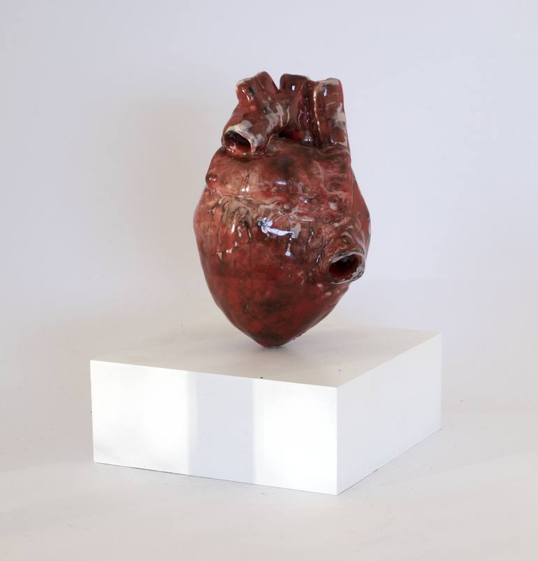 The sculpture belongs to a series of objects / organs, on a scale similar to that of the body, which are sculpted and executed as ceramic objects. The rich surface, which usually fulfills a decorative function, passes to another world of content as they reinforce the sculptures and emphasize the fra...