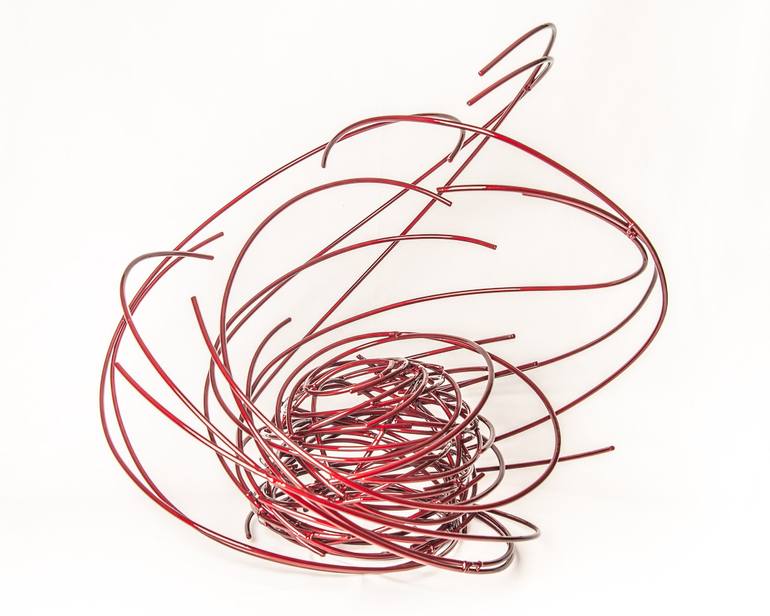 This sculpture was inspired by energetic movement. Free flowing lines were fashioned to emulate the way heat vapors rise into the etheric field. I chose to construct from steel rod for its ease of construction and it's likeness to a linear mark.