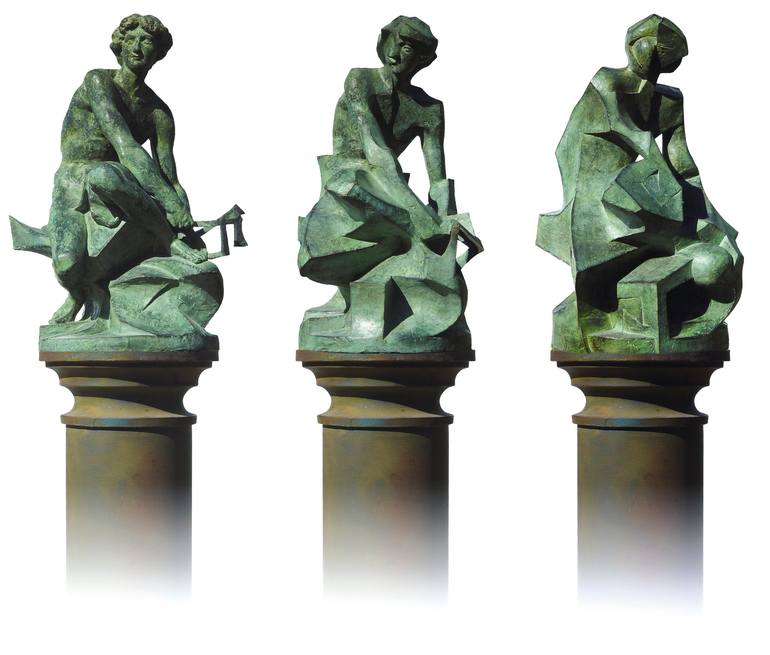 Three bronze sculptures form an indivisible set, they are on 3 Ebony veneer wooden bases (110 cm high) made by hand. Hermes holds a cube in his hands, an element that dissolves and transforms the anatomy of the figure in each sculpture. Starting with the most figurative on the left, until reaching ...