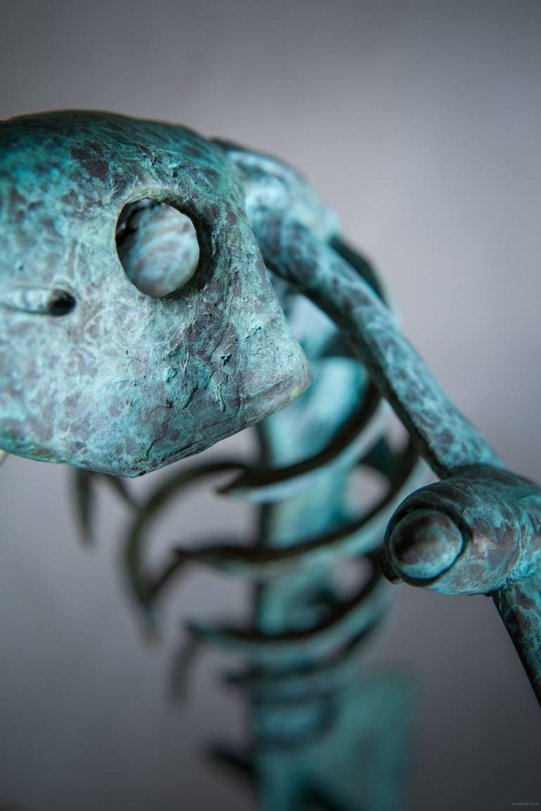 This is No.12 in the limited edition of 12 , Herringkel Mk 2 is finished in a mottled green patina and mounted on Iroko wood base. Part of my Aerorganic series, this piece is a melange between machine and organism, aeroplane and fish: perhaps this was discovered on a sandy shore, the corroded remai...