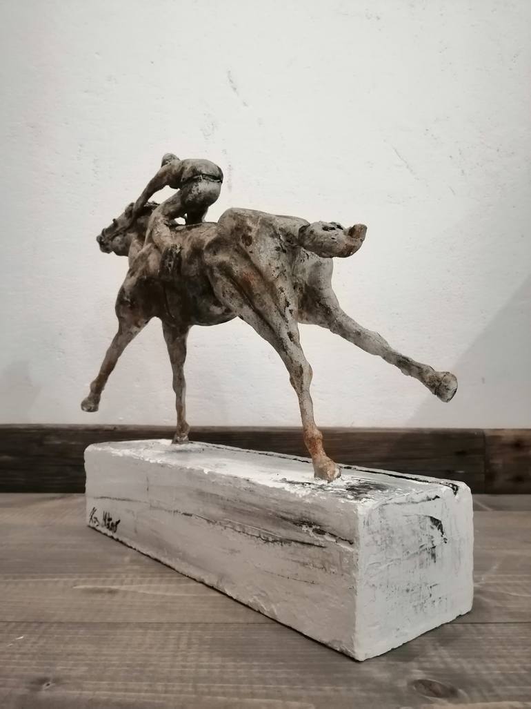 Horse Racing Mixed media: Stone, modeling mass , Iron, concrete, patina, charcoal Dim: 34,5 cm x 37 cm x 10 cm