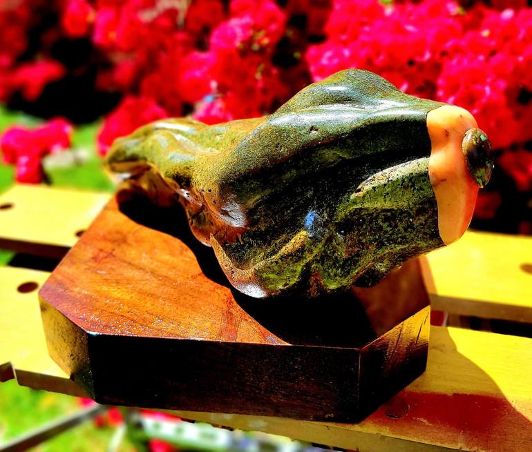 THE MAIN STONE WAS FOUND IN A CORN FIELD IN THE MIDDLE OF NORTH CAROLINA AND INITIALLY SHAPED INTO SOMETHING LIKE A HAND - BUT I GOT CARRIED AWAY AND THUS THE NAME 'I DON'T KNOW.' FUSED TO IT IS ORANGE ALABASTER AND A PIECE OF TURQUOISE. THE BASE IS WALNUT FROM A FALLEN TREE OFF THE APPALACHIAN T...
