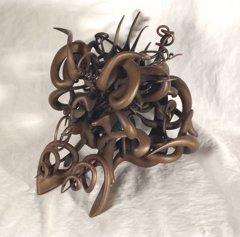 Joshua Harker (b.1970) is an American artist considered a pioneer & visionary in 3D printed art & sculpture. His series of "unmakeable" technically complex tangles is credited as the first to break the design & manufacturing threshold of possiblity. His pursuit of a process to bring his works into the 3rd dimension culminated after nearly 20 years in a perfect storm of software development, materials engineering, & 3d printing technology advancements. He went on to navigate the creation of his "Tangle" series in the archival material of cast bronze, thus bridging the traditional techniques of the past with technology of the present. This has been considered a landmark event in the history of sculpture & the chronology of the 3D printed medium & has made him one of the most recognized artists in the field. His recent works are 2 dimensional pattern based explorations of 3 Dimensional forms. Along with his techniques, subject matter, & execution, his experimentation in the dissemination of his art through digital media & the internet has garnered him international recognition & acclaim. He holds the #1 most funded Sculpture project in the history of the crowdfunding giant Kickstarter & is among 1000s of collections that include such notable artists as Andy Warhol, Ron English, Shepard Fairey, R. Crumb, & Robert Williams. His work has neen exhibited internationally & appeared in such media as TIME, WIRED, The Wall Street Journal, TED Talks, Los Angeles Times, The Economist, MSNBC, Huffington Post, Entrepreneur Magazine, Forbes, National Geographic, and countless others.