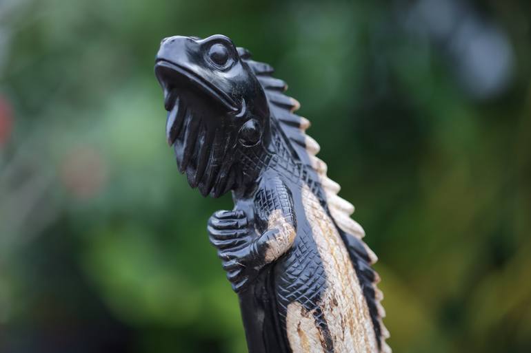 From a single petrified wood, our team made this. The details are just awesome, it looks like a living iguana is standing on a stone. The material is also top quality, indonesian petrified wood. As it can be seen standing tall, it had endured long and hard processes from the making of this fine art....