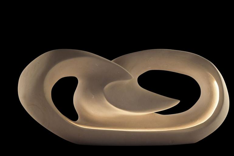 Sculpture on hand-worked Lecce stone, designed and created by the artist Andrea Serra. The sculpture "Incontro" by Andrea Serra captures the essence of two waves that embrace, symbolizing connection and harmony. The soft and fluid shapes are intertwined, evoking a sense of movement and grace, while ...