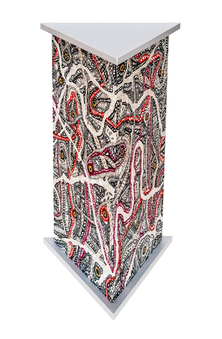 Inferno Art object. Tablet. Sculpture. Inspiration: "The Divine Comedy" (Inferno) by Dante Alighieri. Acrylic painting on MDF board. Dimensions: 27.17 ” x 15.75” x 15.75" Diameter: 15.75"