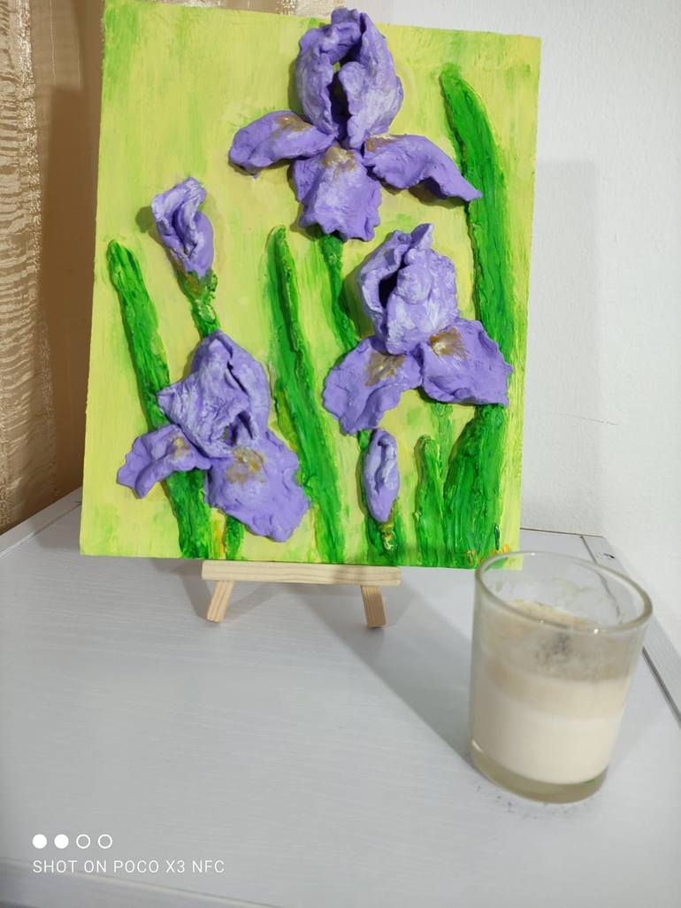"Irises in my garden". I really love walking with my dog. It relieves the stress of the day. It often stops, like all dogs, and I admire the plants. To see the beautiful, you do not need to travel far from home, you just need to look closely at the plants around us. The combination of purple, yellow...