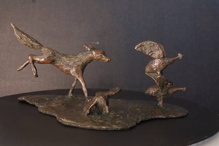Jackal chasing Guineafowl Sculpture