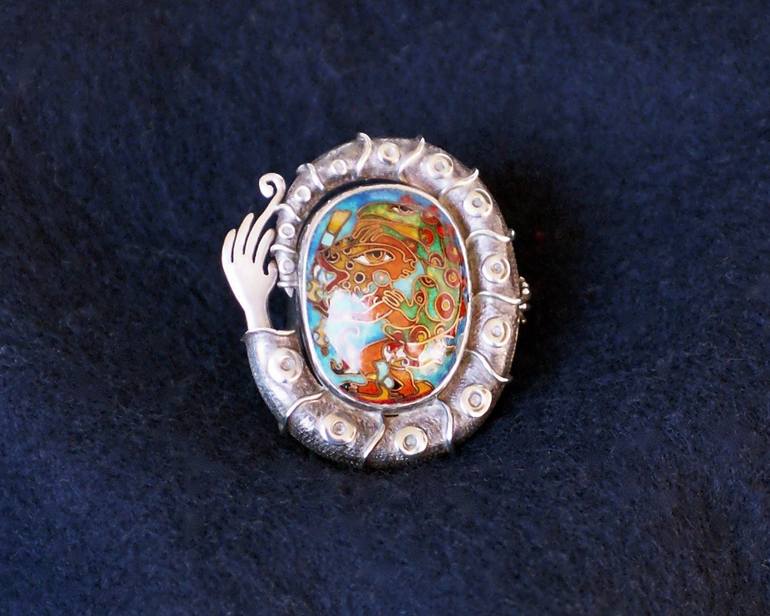 Jewellery, made from Sterling Silver and cloisonné. Inspired by the tradtional art and mythology of Mexico, where the painter lived for 15 years in Taxco/Guerrero. Feel inspired by exotic mythology, surrealism, fantasy and transcendental mind.