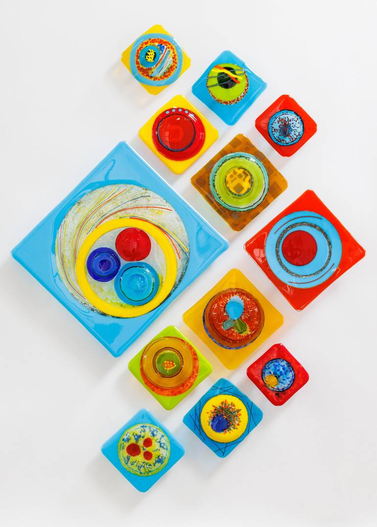 This one-of-a-kind wall sculpture features the highest quality glass with smooth 6mm edges for a substantial look and feel. The sculpture features a gallery-grade integrated hanging system that floats the glass away from the wall. Squares may be hung horizontally or diagonally as a diamond. You can ...