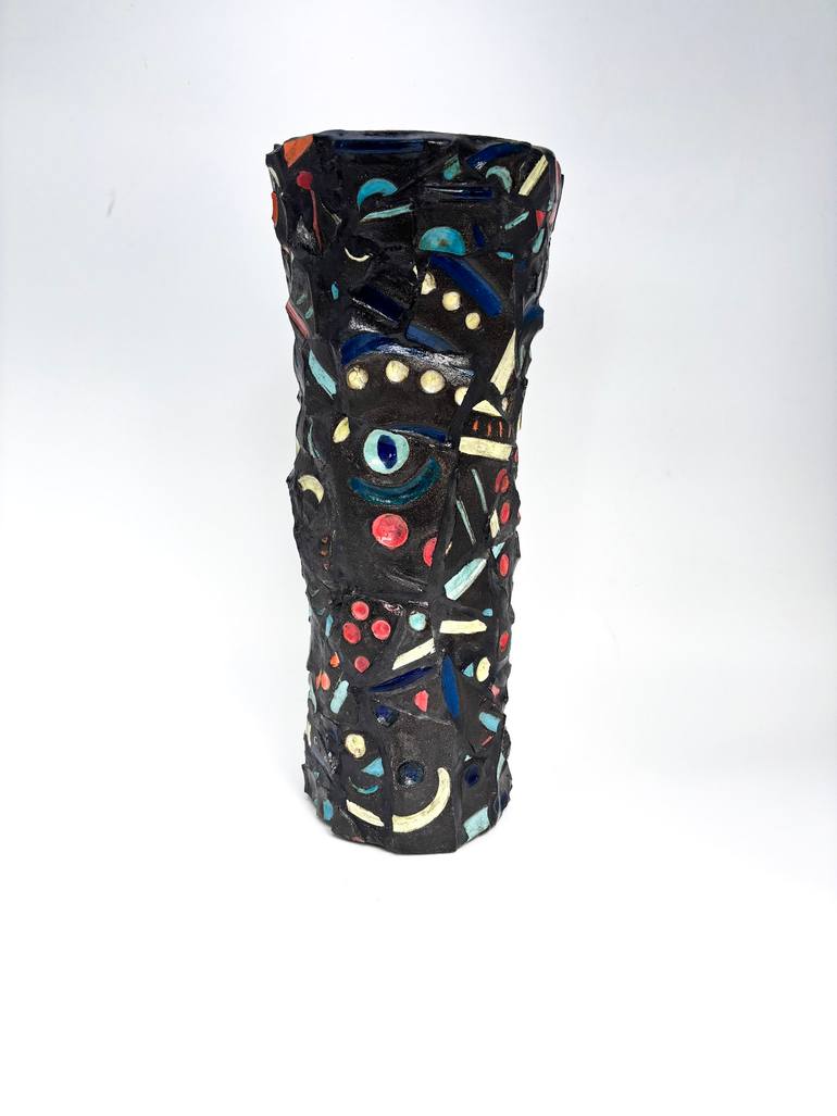 Crafted from black stoneware clay, Kaleidoscope juxtaposes dark and colorful ceramic elements, forming a dynamic visual contrast. The abstract geometric shapes bring a sense of order and chaos, mirroring the complex patterns found in nature. Inspired by the ever-changing and multifaceted patterns o...