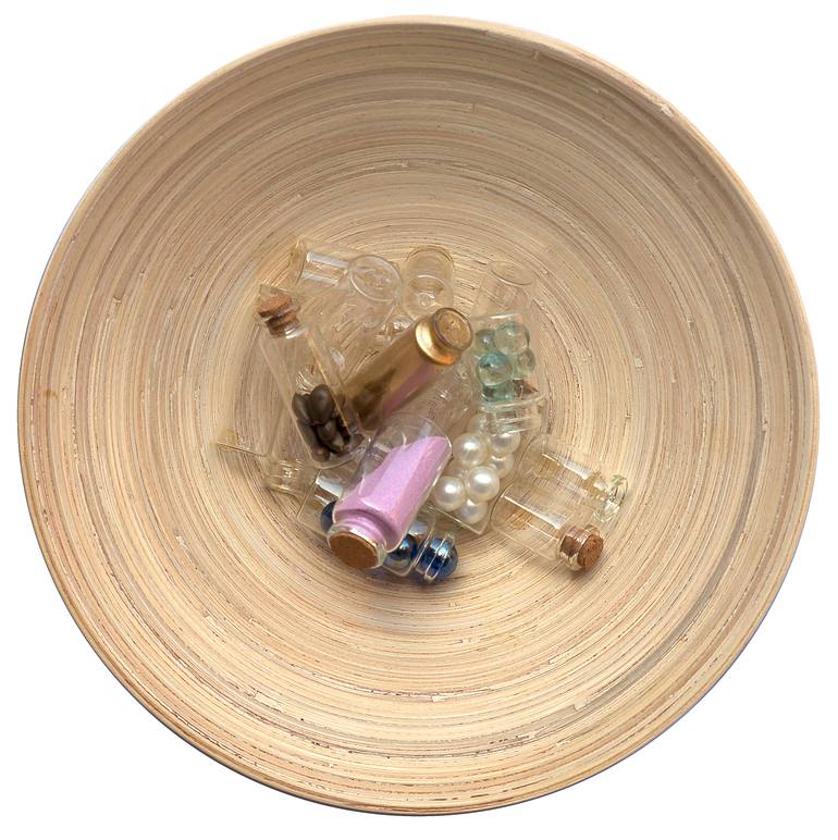 The Kaleidoscope object is made of a artificial pearls, marbles, Annona seeds, bronze powder, ruby corund and glass containers attached in a specific order to a wooden bowl. The wooden bowl represents the Universe, while the other, smaller components stand for the diversity of all existing objects,...