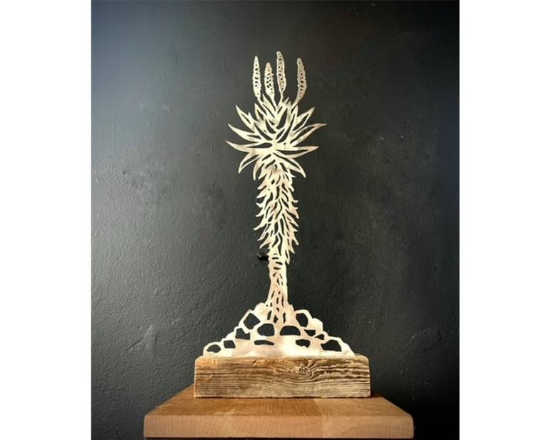 Aloes are a symbol of South Africa, especially the drier areas of the Eastern Cape and Karoo, where they stand like sculptures in the magnificent landscape. The sculpture comes with a wooden base.