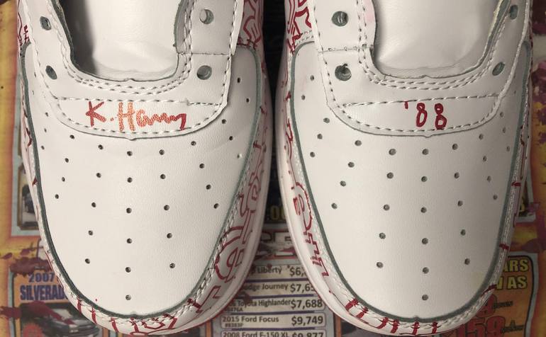 In honor of the great Keith Haring. I found out we were both from Reading, PA. Your work and your mind are truly missed. -Size pictured is a US Men’s 10- **Signature on toe box is NOT actual signature, just a representation of it** **In NO way am I, nor this piece, associated with Keith Haring, o...