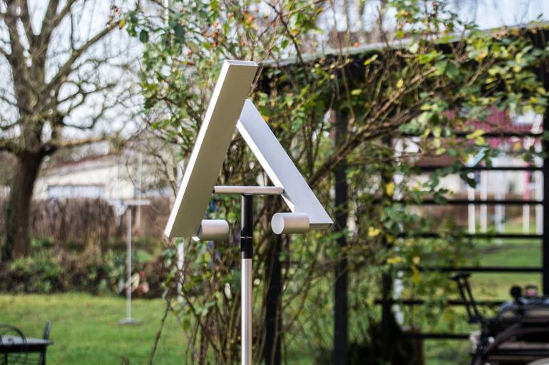 About the Kinetic Sculptures of Michael Hischer:The kinetic sculptures of Michael Hischer are designed for the outdoor space. They are made of stainless steel and aluminium. The moving elements are attached centrally to the axles by groove ball bearings. They are so accurately weighted that even the slightest breeze will set them into motion.Finely balanced, the wings seem to find their centre weightlessly and thereby demonstrate that in their innermost, they are assigned to meditation.Kinetic sculptures are four-dimensional, and when their wings randomly and unpredictably glide through the air, they also deal with the passing of time. They describe time that elapses in the motion. Ease, equilibrium and balance are their theme, deceleration their essence. They appear to waste so pointlessly what seems to be of utmost importance to us today time.