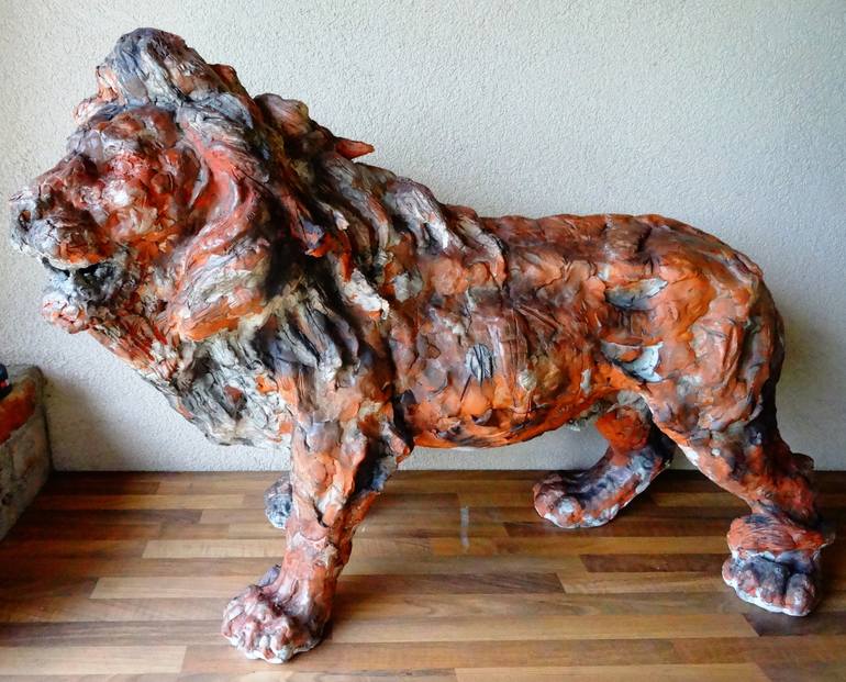 LION dim: 120 l,74 h, 45w mixed technique,modeling mass