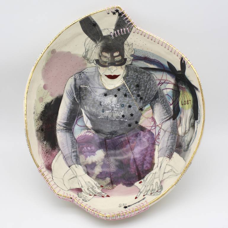 Yurim Gough is ceramic visual artist who comes from Korea, a country with a historic tradition of ceramics, where she was a fashion designer and had been designing high heeled shoes for over ten years in Seoul then in Tokyo and London. She emigrated to England in 2007, the first time she had set foot outside Asia. Learning English from scratch and being influenced by the radical change in culture she went back to being an artist, which was always her first calling. Starting with life drawing and experimenting with other media, She found herself drawn to her cultural roots in ceramics, mixing the two. In 2013 she made bowls and sketched live models drawing directly onto the contoured surfaces, combining the organic hand-moulded form of the bowl with the human form of the model. A couple of years later she began to add imagery to the pieces to extend the narratives that began with the poses, seeking inspiration from what she found captured in the drawings. In Asian culture bowls are philosophically connected with humanity; for example in Korea they might talk about how big a bowl you have in your mind, so the bowl is holding all your knowledge and experience. Artist Statement My art practice explores humans’ complex emotions, different feelings and thoughts; it is concerned expressing the subconscious mind in my artworks. Life drawing in front of the living, breathing model is very important and it helps me to understand the humanity that bridges between reality and the idealistic, by joining the model's pose to the contoured surface of the ceramic piece. The lines from the model are communicated on the rough texture of the hand-built stoneware with a ceramic pencil, never changing a line. The jagged lines soften under glaze. Subsequently, a variety of colourful images are layered on top of the life drawing. I make them translucent with the human body visible underneath. Mixing my lifelong love of life drawing with ceramics in a unique way as a self-taught artist. I use traditional methods and combine with modern methods such as using 3D-printed parts for the ceramics or creating digital art to apply via transfers. My ideas are hugely influenced by modern society, current issues, especially recent trends and electronic information received from social media.