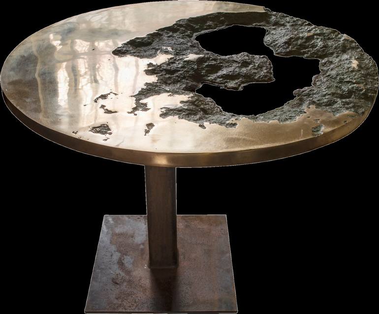 "La Table" is a functional sculpture that captivates with its unique style. The table top is crafted from polished bronze, giving it an elegant and luxurious character. A transparent glass plate is placed over the bronze top, adding a touch of modernity and minimalism. The table leg is made of high...