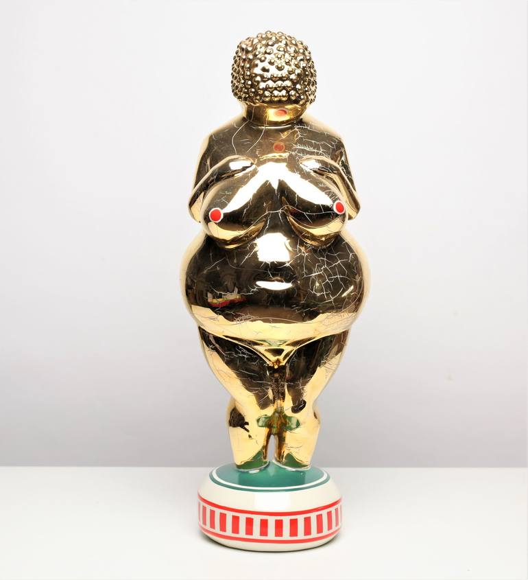 Lady Venus model Gold The Return of the Legend series is a play on associations from the world of pop culture in juxtaposition with the female figure created during the Paleolithic period. The famous Venus of Willendorf being, according to some, a magical image, an element of fertility worship, mig...
