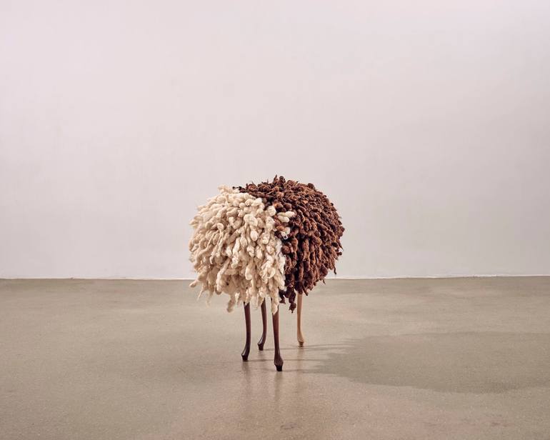 In 1999 I made a wall hanging with a horizontal baroque wooden frame. I took it from a so-called kitsch couch. The leftover legs were standing against each other in my studio. I saw a sheep in them. The Museum of Natural History in Leiden had asked me to make an exhibition on three floors of their n...