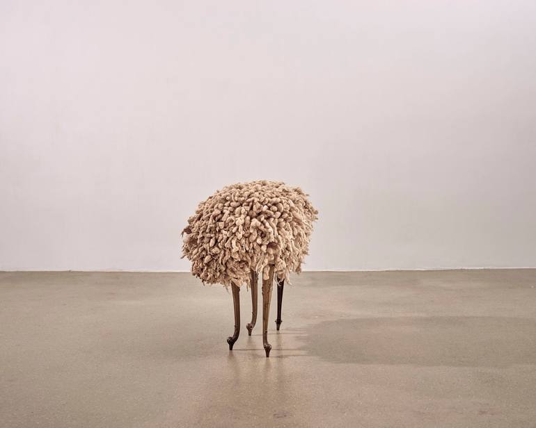 In 1999 I made a wall hanging with a horizontal baroque wooden frame. I took it from a so-called kitsch couch. The leftover legs were standing against each other in my studio. I saw a sheep in them. The Museum of Natural History in Leiden had asked me to make an exhibition on three floors of their n...